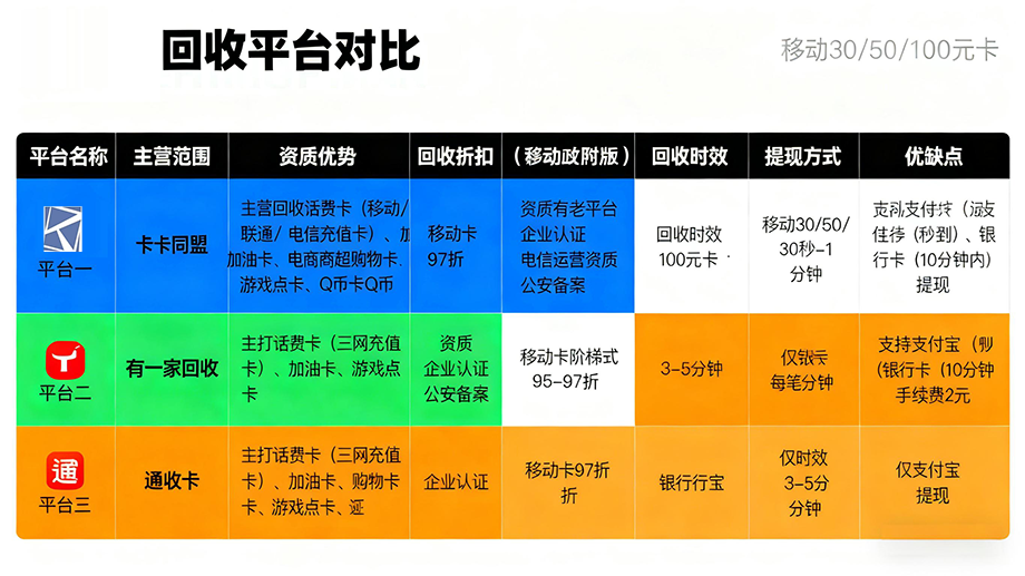 相信不少人都遇到过这样的烦恼:手里有几张用不完的话费充值卡、购物卡,扔了可惜,放着又浪费。这时候,一个靠谱的礼品卡回收平台就显得尤为重要。它不仅能让闲置资源瞬间变现,更能让你体会到“秒到账”的快感。然而,面对市面上众多的回收平台,如何选择一家速度快、折扣高、安全省心的呢?今天,我们就来深度盘点头部三家移动充值卡回收平台,从资质、折扣、速度到提现,进行一次全方位的硬核对比,帮你找到最值得信赖的“变现管家”。
